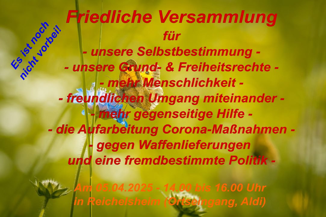 Nachbarschaftlich zusammen für uneingeschränkte Grundr- echte und Friedenspolitik, gegen ID 2020, die Agenda 2030, und das globale WHO Pandemie- Diktat! Für uneingeschränkte Menschenrechte!, Besonderheit: mit Umzug, | |